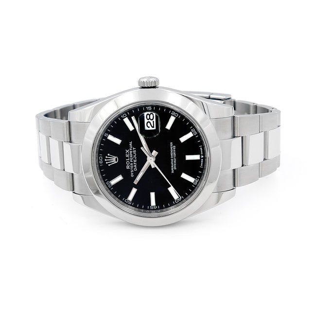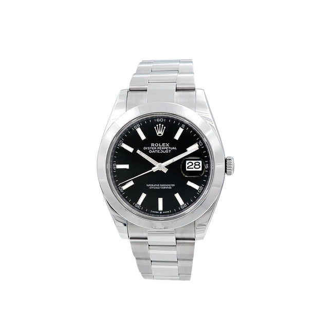41mm Rolex Stainless Steel Oyster Perpetual Datejust 41 Watch. Black Dial. Stainless Steel Smooth Bezel. Stainless Steel Oyster Band. Style 126300.